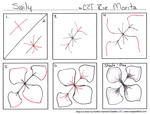 My version of the step-outs are HERE. More inspiration from the tangle creator is over THERE.
