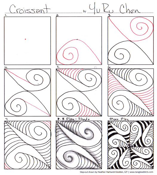 My version of the step-outs are HERE. More inspiration from the tangle creator is over THERE.