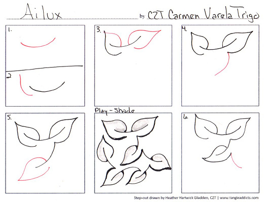 My version of the step-out is HERE. For more inspiration from the creator of the tangle is over THERE.