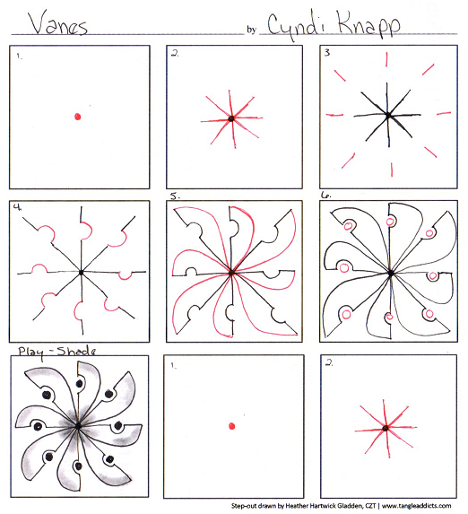 My version of the step-out is HERE. For more inspiration from the creator of the tangle is over THERE.