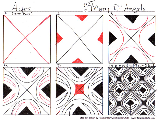 My version of the step-out is HERE. For more inspiration from the creator of the tangle is over THERE.