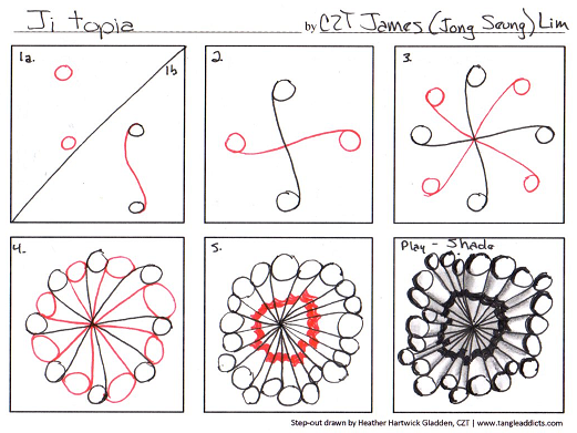 My version of the step-out is HERE. For more inspiration from the creator of the tangle is over THERE.