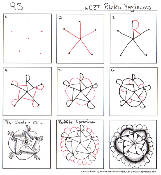 My version of the step-out is HERE. For more inspiration from the creator of the tangle is over THERE.