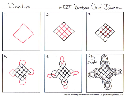 My version of the step-out is HERE. More inspiration from the tangle creator is over THERE.