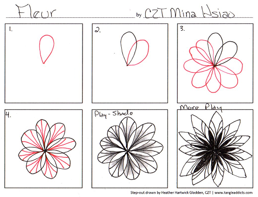 My version of the step-out is HERE. More inspiration from the tangle creator is over THERE.