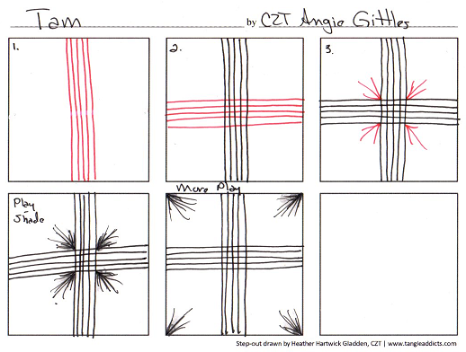 My version of the step-out is HERE. More inspiration from the tangle creator is over THERE.