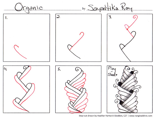 My version of the step-out is HERE. More inspiration from the tangle creator is over THERE.