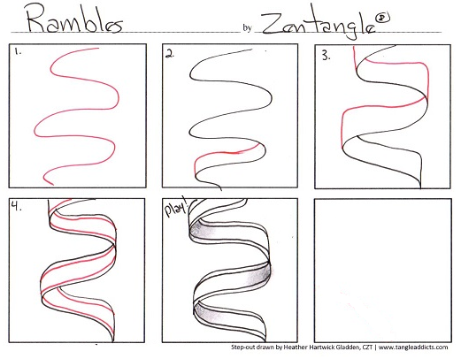 My version of the step-out is HERE. More inspiration from the tangle creator is over THERE.