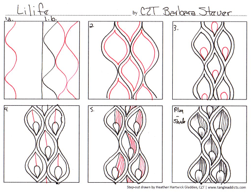 My version of the step-out is HERE. More inspiration from the tangle creator is over THERE. (Scroll down a little to find it.)