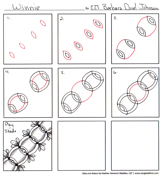 My version of the step-out is HERE. For more inspiration from the creator of the tangle is over THERE.