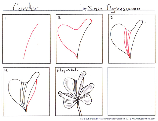 My version of the step-out is HERE. For more inspiration from the creator of the tangle is over THERE.
