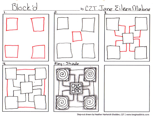 My version of the step-out is HERE. For more inspiration from the creator of the tangle is over THERE.