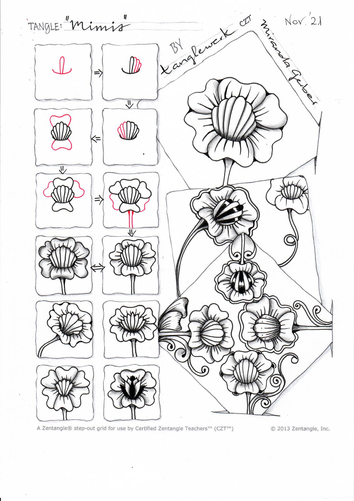 My version of the step-out is HERE. For more inspiration from the creator of the tangle is over THERE.