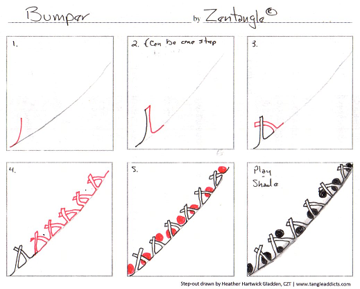 My version of the step-out is HERE. Zentangle® has not put out this tangle on their blog or in videos that I can find.