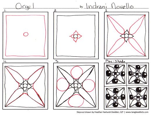 My version of the step-out is HERE. For more inspiration from the creator of the tangle is over THERE.