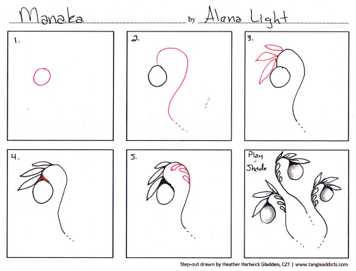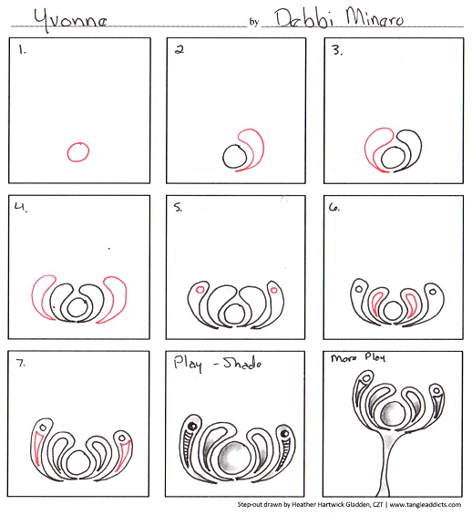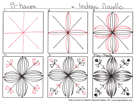 My version of the step-out is HERE. More inspiration from the tangle creator is HERE. For even more inspiration HERE is the link to TanglePatterns.