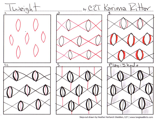 My version of the step-outs are HERE. More inspiration from the tangle creator is over THERE.