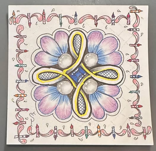 Queen B was created by Helen Williams. My version of the step-out is HERE. For more inspiration from the creator of the tangle is over THERE. Join us for more fun on our Private Facebook Group (make sure to answer the questions). If you haven’t joined us online … Continue reading Day 17: Queen B | January Tangles 2026 - Windflowers | 1/15/26 TangleTime Recap